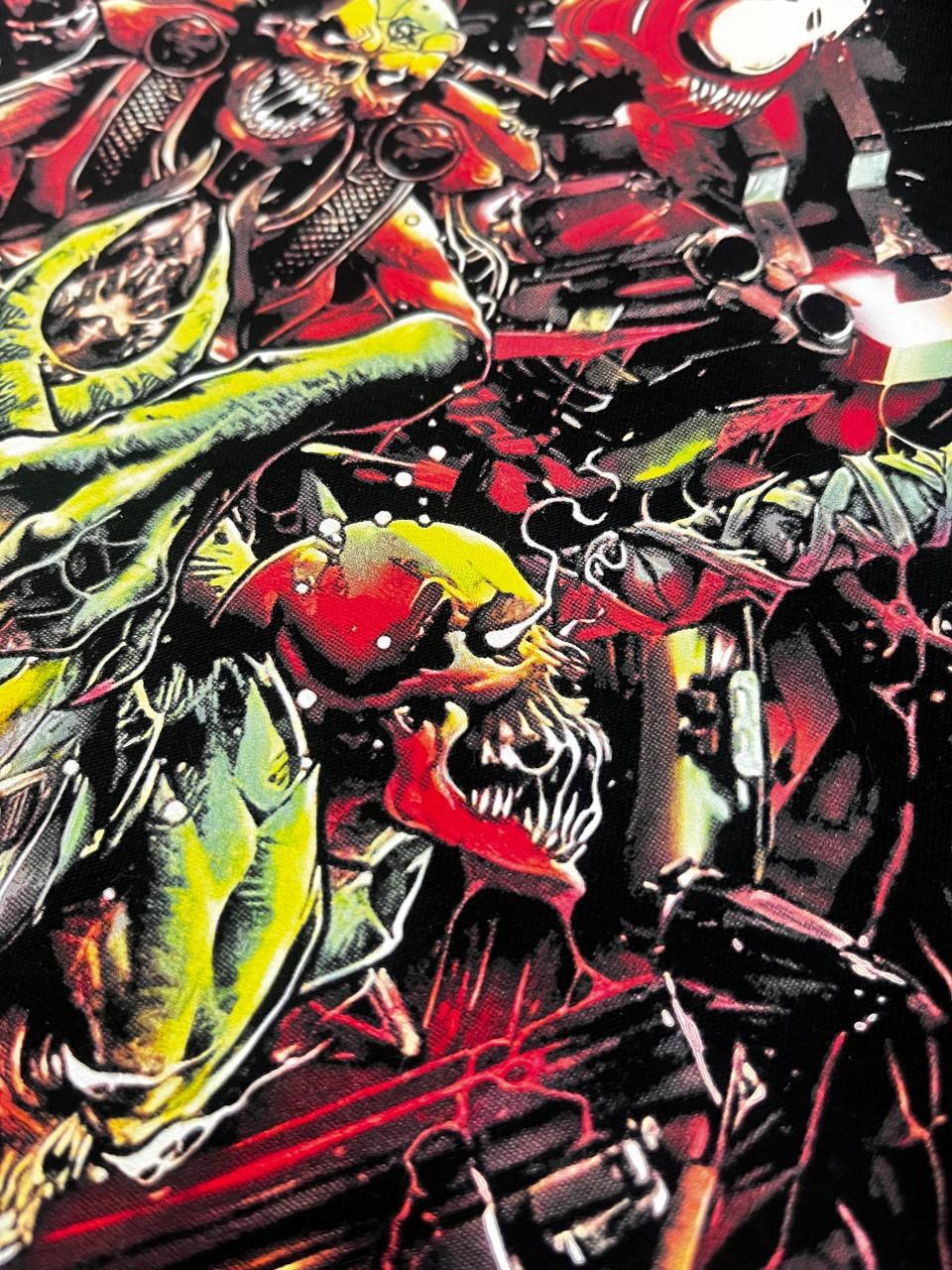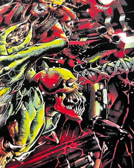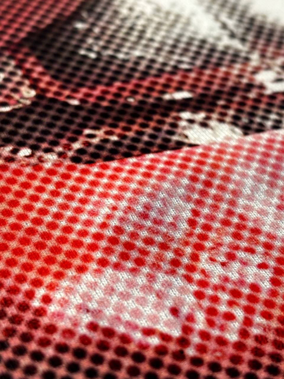 При больших изображениях с крупной заливкой, принт ощущается как тонкая плёнка на ткани