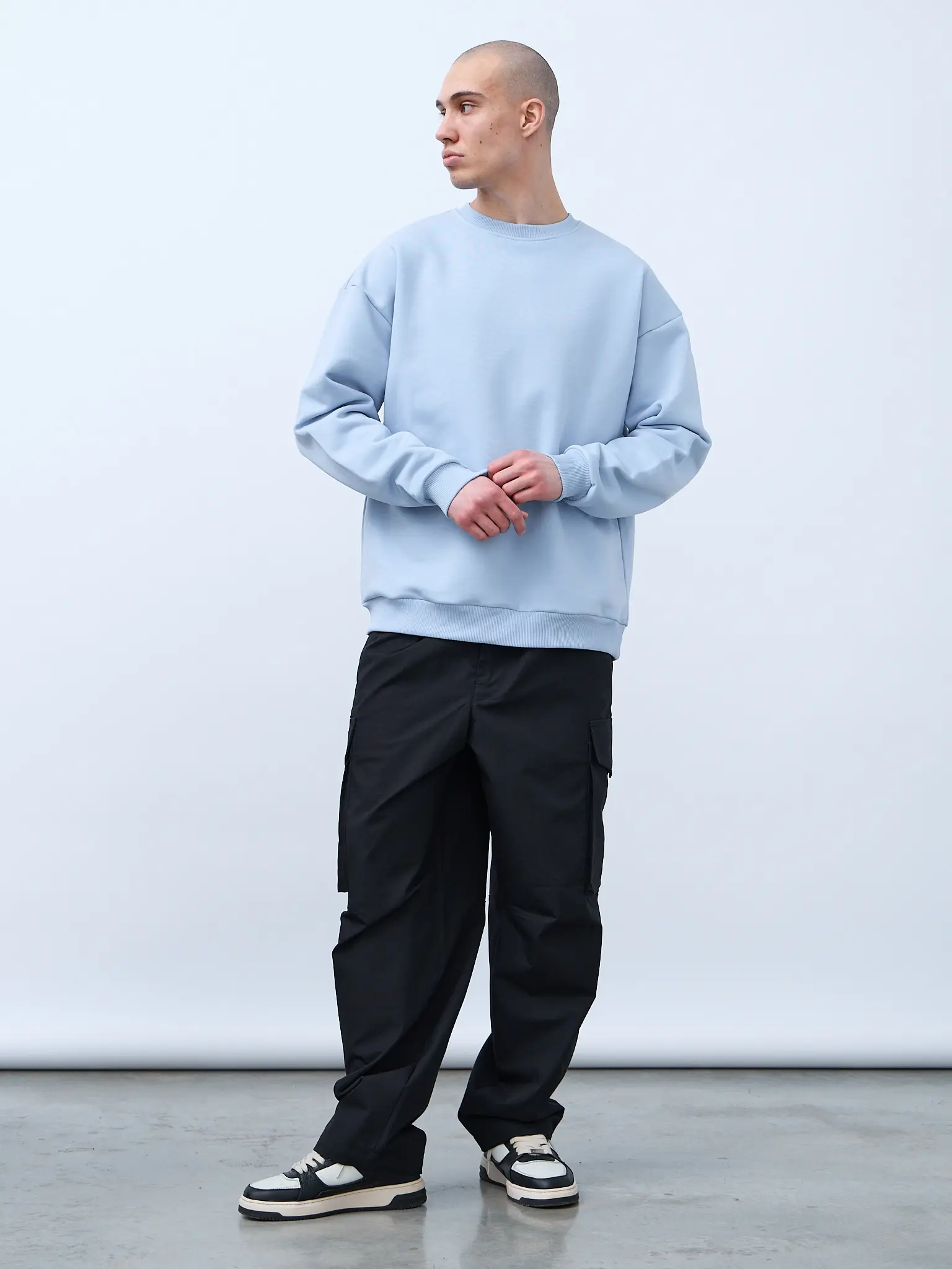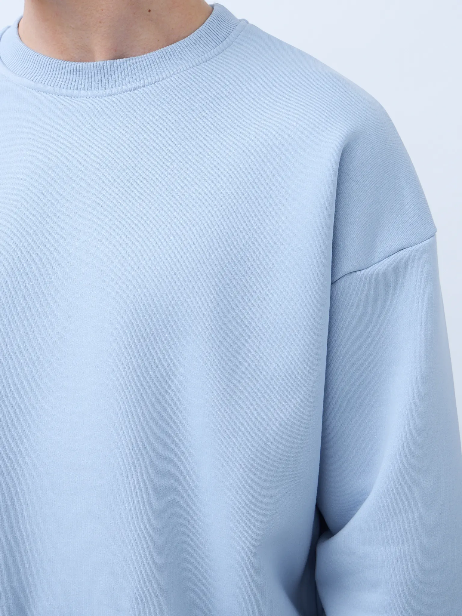 Базовая оверсайз футболка "голубого" цвета. Свободный силуэт, спущенная линия плеча. Футболка универсальная, для мужчин и женщин. Выполнена из премиального трикотажного полотна "кулирная гладь" качества пенье компакт. Горловина по спинке и плечи усилены бейкой. Плечевой шов выполнен дорогостоящей и сложной обработкой двойным цепным швом. По центру горловины вшит тканевый жаккардовый размерник черного цвета, в боковой внутренний шов футболки вшит составник 100% хлопок с указаниями по уходу. Футболки не имеют брендированных обозначений.