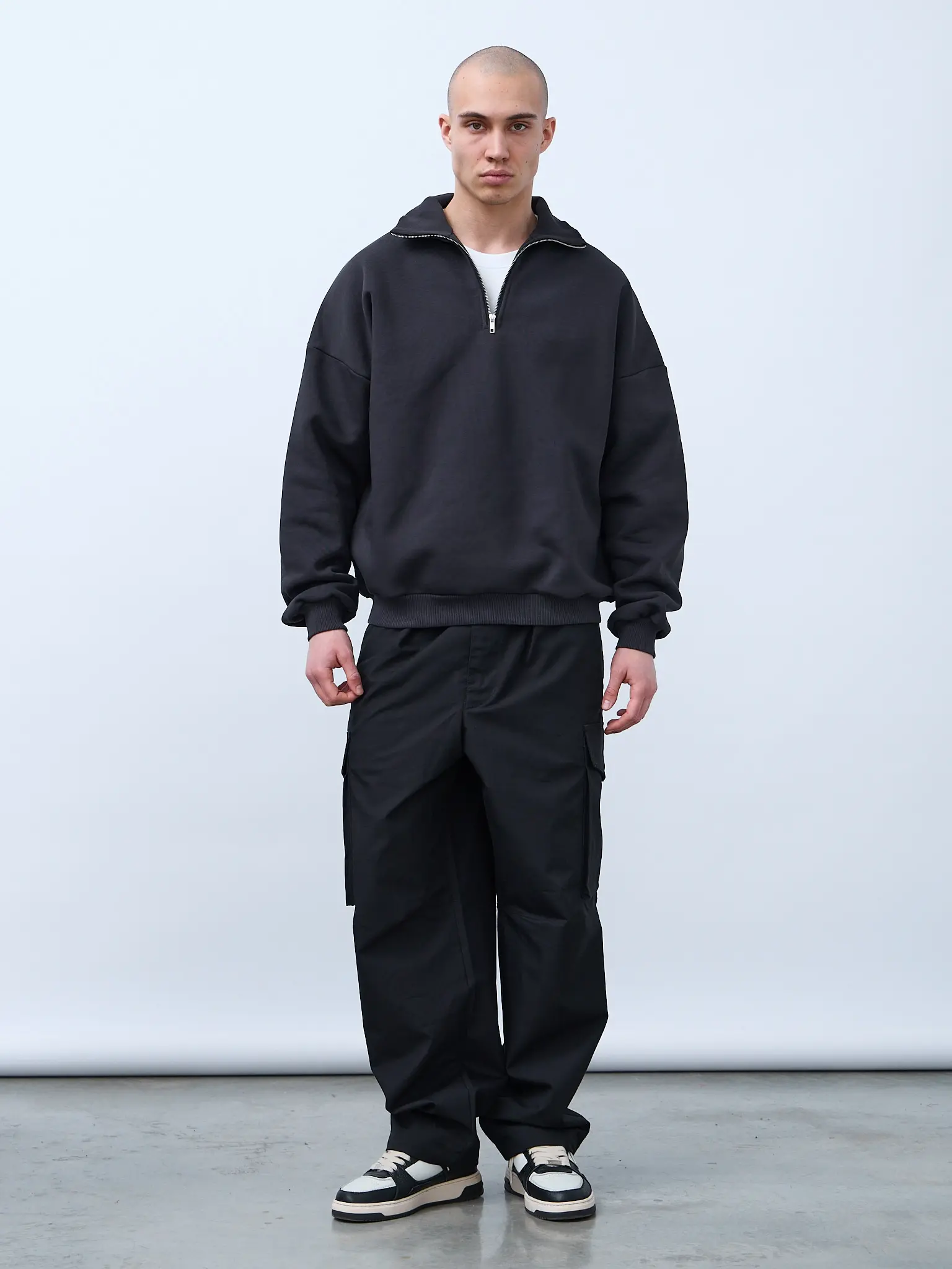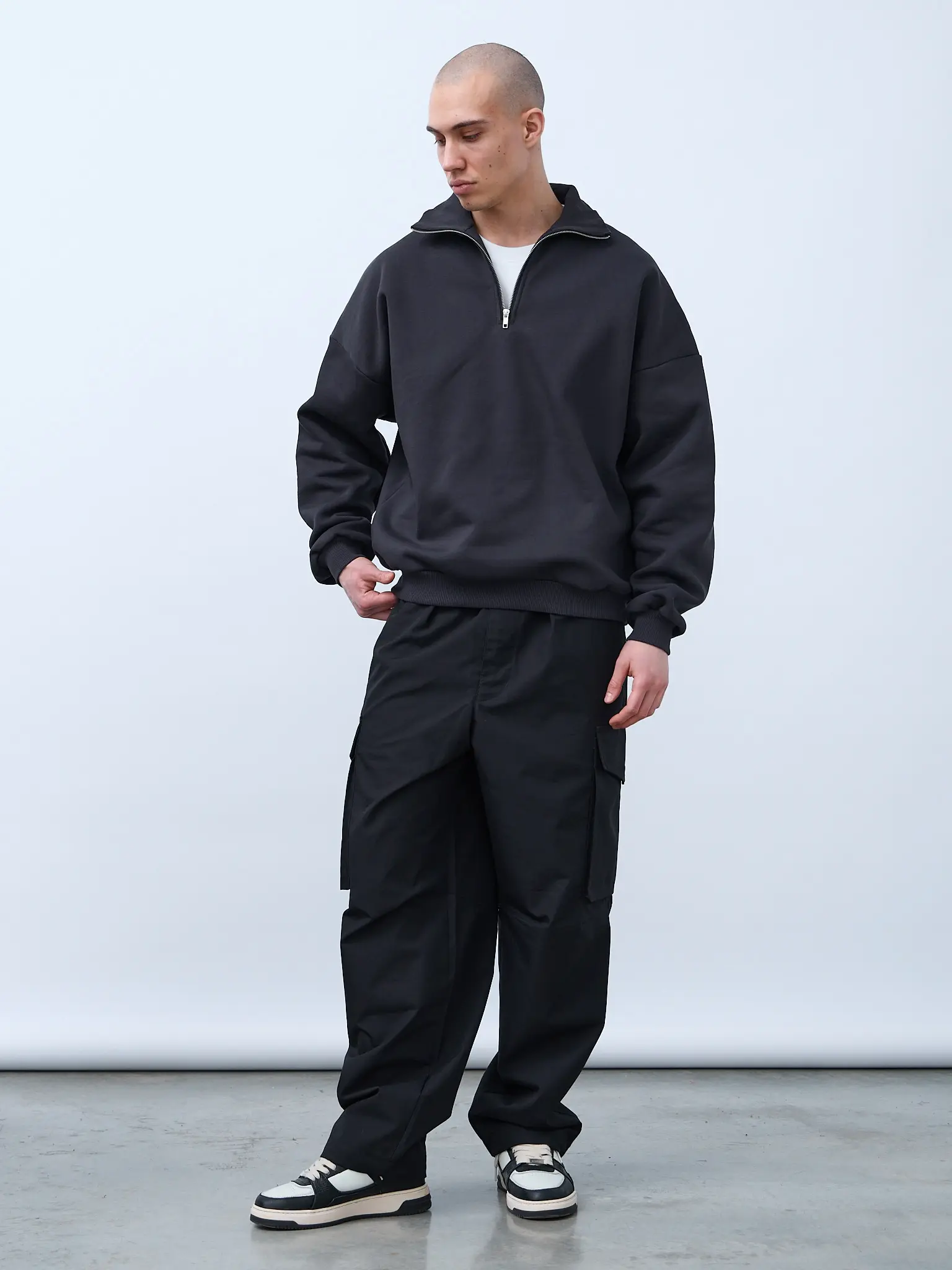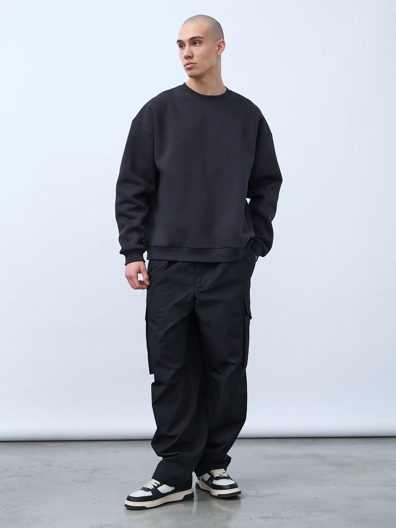 Базовая оверсайз футболка цвета "графит". Свободный силуэт, спущенная линия плеча. Футболка универсальная, для мужчин и женщин. Выполнена из премиального трикотажного полотна "кулирная гладь" качества пенье компакт. Горловина по спинке и плечи усилены бейкой. Плечевой шов выполнен дорогостоящей и сложной обработкой двойным цепным швом. По центру горловины вшит тканевый жаккардовый размерник черного цвета, в боковой внутренний шов футболки вшит составник 100% хлопок с указаниями по уходу. Футболки не имеют брендированных обозначений.